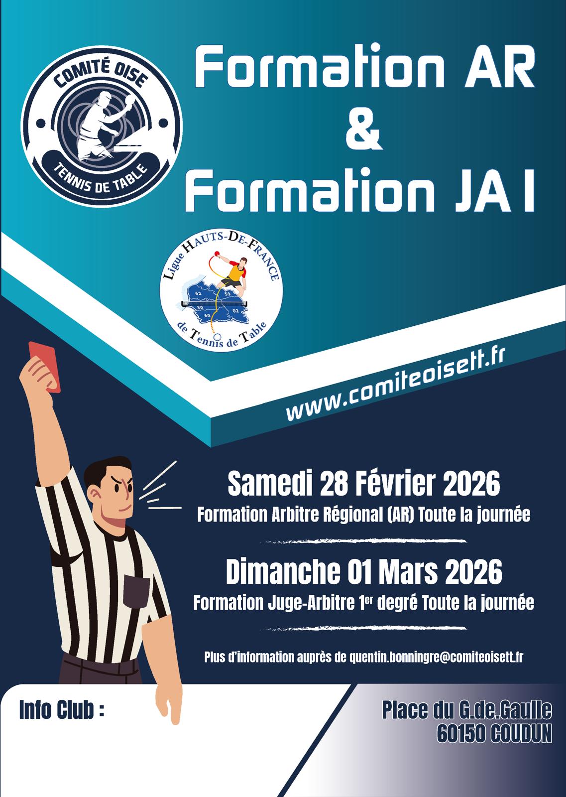 2025-2026 Formations théoriques : Arbitre Régional et JA1 organisées dans l'Oise