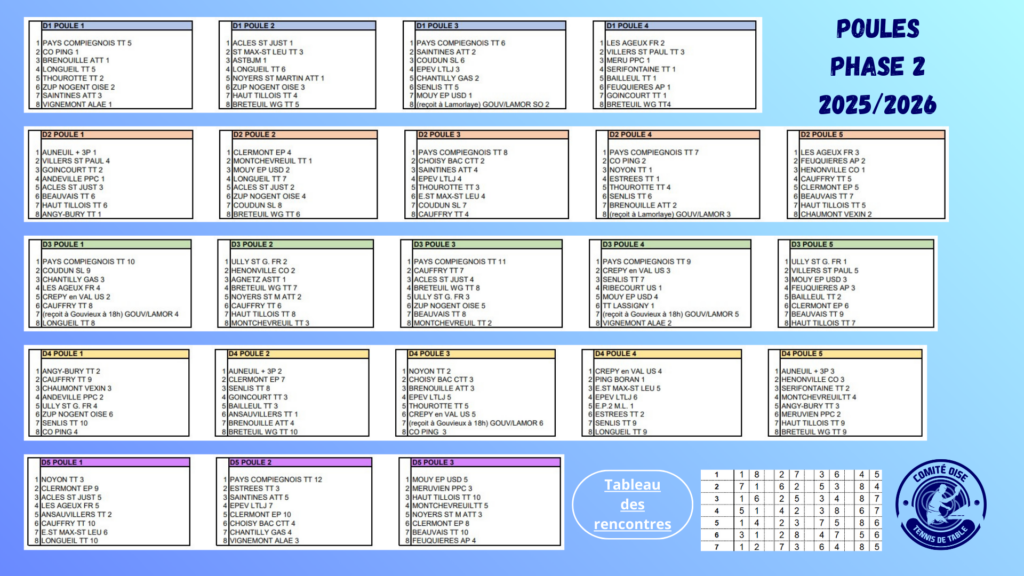 Toutes les poules de toutes les divisions – au 23-01-2026 (cliquez ici)