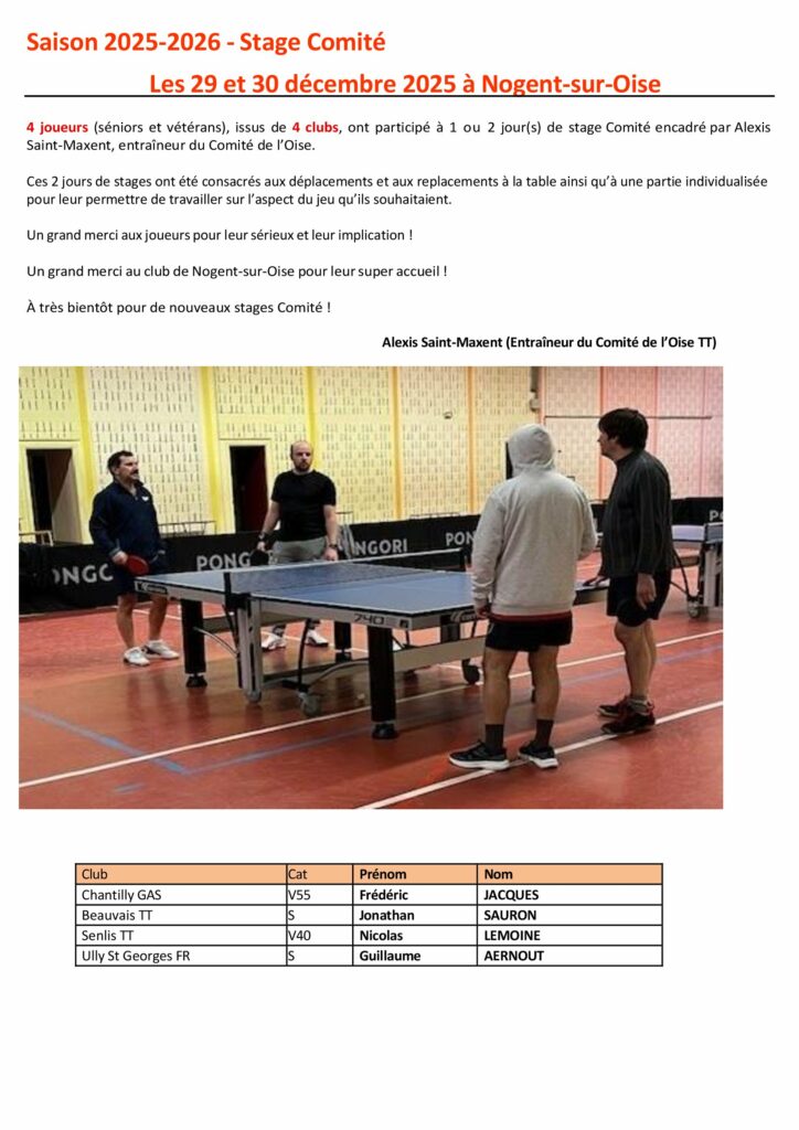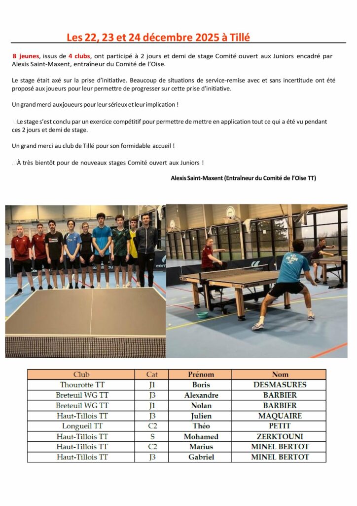 Responsable des stages Comité : Alexis SAINT-MAXENTalexis.saint-maxent@comiteoisett.fr Sur inscriptions :"Stage Comité ouvert aux Cadets 2 et juniors" et "Stage Comité ouvert aux juniors, séniors et vétérans " Noel 2025 Toussaint 2025